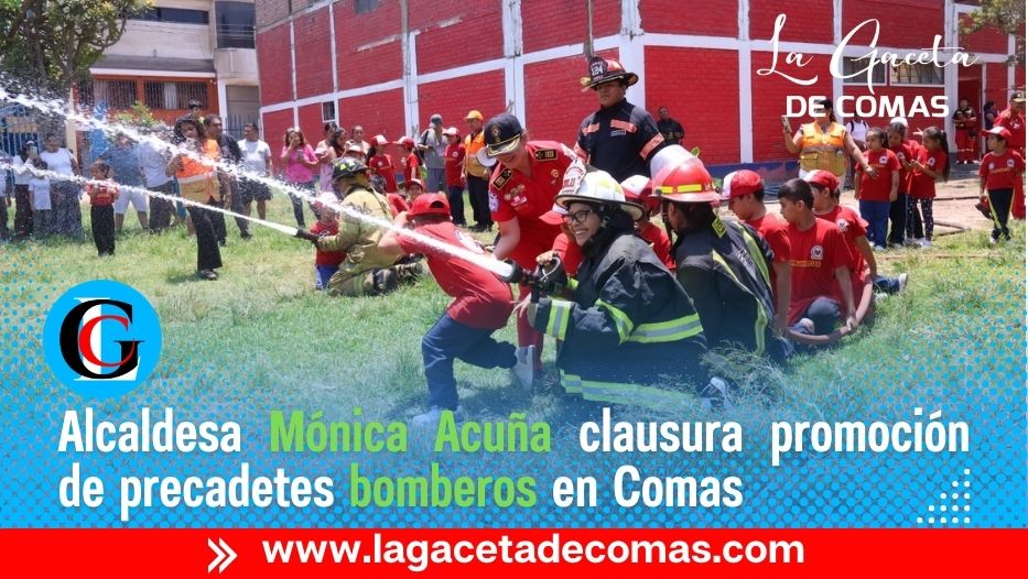 Comas.- En una ceremonia cargada de reconocimiento y compromiso ciudadano, la alcaldesa de Comas, Mónica Acuña, participó en la clausura de la nueva promoción de precadetes de la Compañía de Bomberos Comas N.º 124, un acto que resaltó la vocación de servicio y el liderazgo de jóvenes comprometidos con su comunidad.